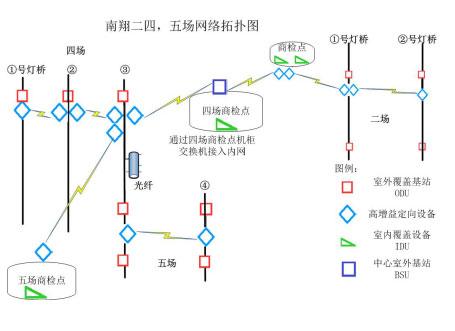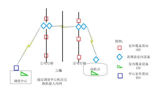南翔站無線覆蓋項目涉及到貨檢作業區一場,二場,三場,四場,五場,調度中心,各場商檢點。其中數據落地點共有三處,分別為一場商檢點,調度中心機房,四場商檢點。從這三個點通過交換機接入內部網絡。