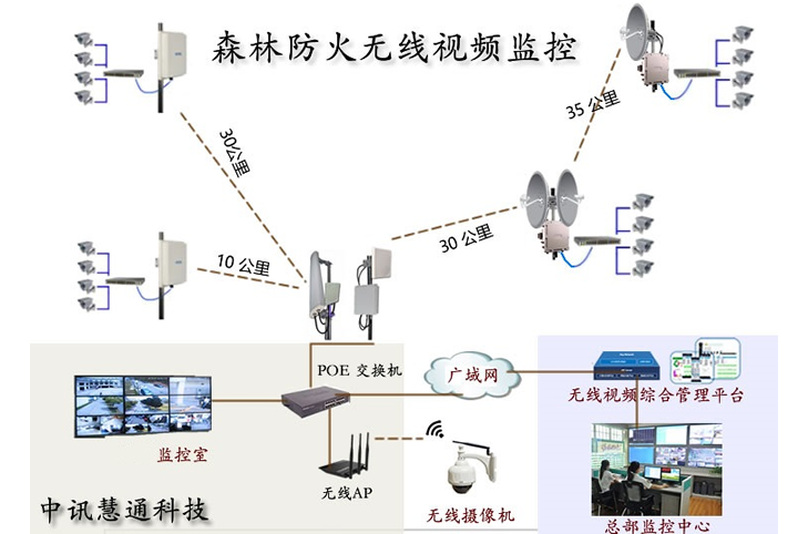 中訊慧通科技專注于無線監控行業的研發與應用,公司擁有完善的森林防火無線通信監控方案,整個方案集森林防火的前端圖像采集、傳輸、存儲、分析、發布、應用管理及森林消防系統會議的召開于一身的森林防火監控系統,形成全方位、全天候的森林防火監測體系。 中訊慧通科技拓森林防火無線通信系統實現了森林防火工作的規范化、科學化、信息化,真正做到早發現、早解決火災隱情。真正意義上達到了早發覺,排除森林火災隱情的效果,極大的提高了森林環保工作的效率與質量。