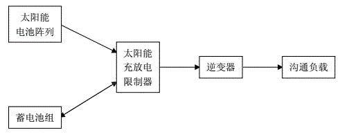 通信桿供電方案配備獨立的太陽能供電系統。太陽能供電系統主要由太陽能電池方針、充放電控制器、逆變蓄電池組構成(如圖)。