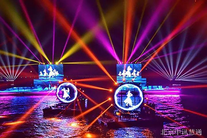 在節目開演的前兩個月,九州港項目負責人找到我們公司,尋求我們的幫助,項目現場主要船舶上放置多媒體裝置(大屏、燈光、音箱、機械噴泉等裝置),表演節目的不同特效。6艘小型表演船、2艘控制表演船、2艘觀眾船,共計10艘船,實現船舶間的無線網絡信號傳輸,確保每艘船都有穩定清晰的網絡信號。