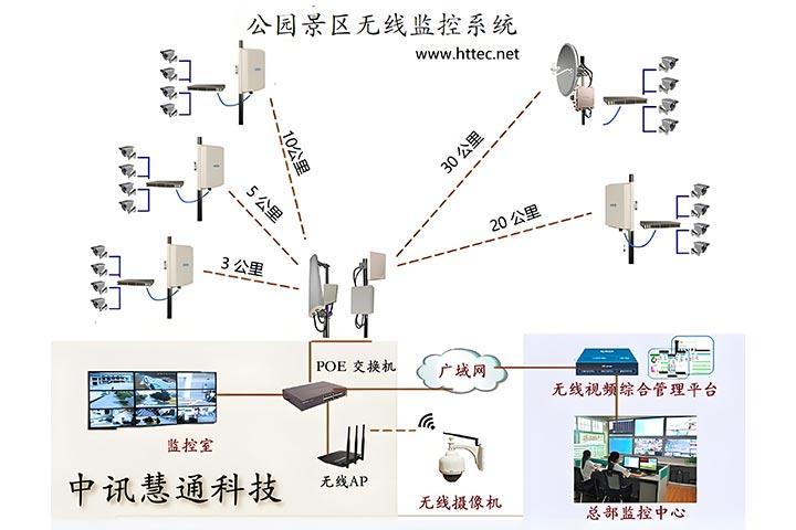 由于很多旅游景點都建設在郊區,不方便布線,因此騰遠智拓設計出了一套專為旅游景區、公園等不方便布線的環境而設的無線監控系統,以下則為該系統的介紹: