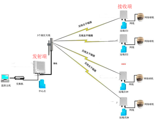 按照要求分別在港口二十個點處分別安裝百萬高清網絡攝像機,每個點獨立用一臺高性能無線網橋作為發射,前端一共需要二十臺設備來發射;
