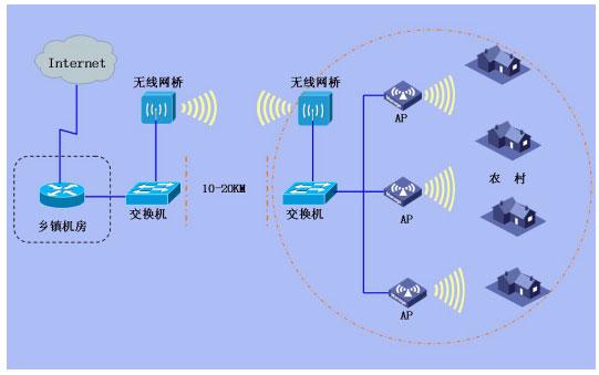 無線技術的成熟與發展在越來越多的場合得到推廣及應用,并得到各大運營商的青睞運用到各種場合,隨著農村的發展,人們生活水平的逐漸提高,對上網需求有著更大的提高。然而,農村地域廣闊,地形環境復雜多樣,居住地間距離較遠且分散,網絡建設的投資水平和消費水平的限制等等諸多困難,制約著農村信息化建設的發展。農村一般人口居住均在方圓3公里范圍內, 且高層建筑較少, 房屋多為磚木結構建筑。根據無線微波的特點,選擇合適的制高點架設無線設備并配合合適的接收終端,在半徑5公里范圍內能夠達到高穩定性高速率無線鏈路,完全滿足農村用戶上網需求,無線寬帶業務在農村有著不可比擬的優勢:建網成本低、一次性投入資金少、運營與維護成本低、建網速度快、高可靠性與超強的可擴展性,不僅可以為農民提供方便、快捷、費用低廉的寬帶入戶方式,也非常適應農村網絡建設逐步發展的需求。