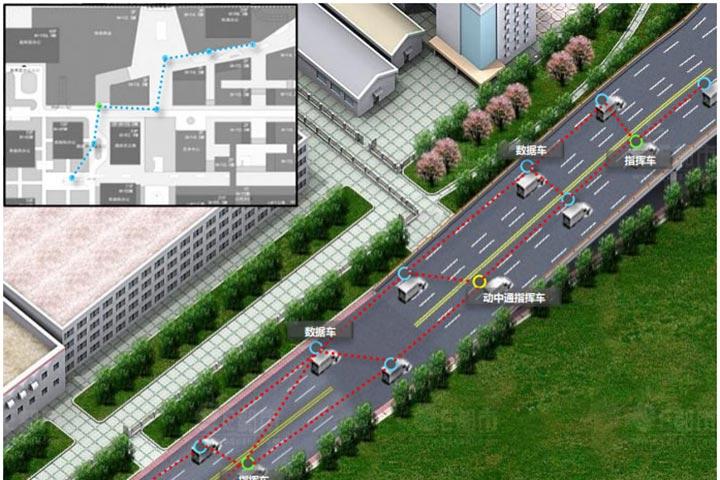 對于車輛通信而言,無論是靜中通還是動中通都已發展成熟,但對于車輛間的動態組網, 一直缺少一種恰如其分的性價比高的手段。中訊慧通科技的無線MESH無線自組網設備恰好能解決此需求。下圖是中訊慧通科技參與的某軍車隊組網的項目案例。 該車隊是由十幾輛車構成,車與車之間保持語音對講、群呼等通信;同時其中三臺指揮調度車,可對其他車輛的車內、車頭以及路況視頻逆行監控。 此外,其中一臺指揮車裝備有動中通,通過調動車隊任意視頻的方式,可借助衛星傳回監控中心。